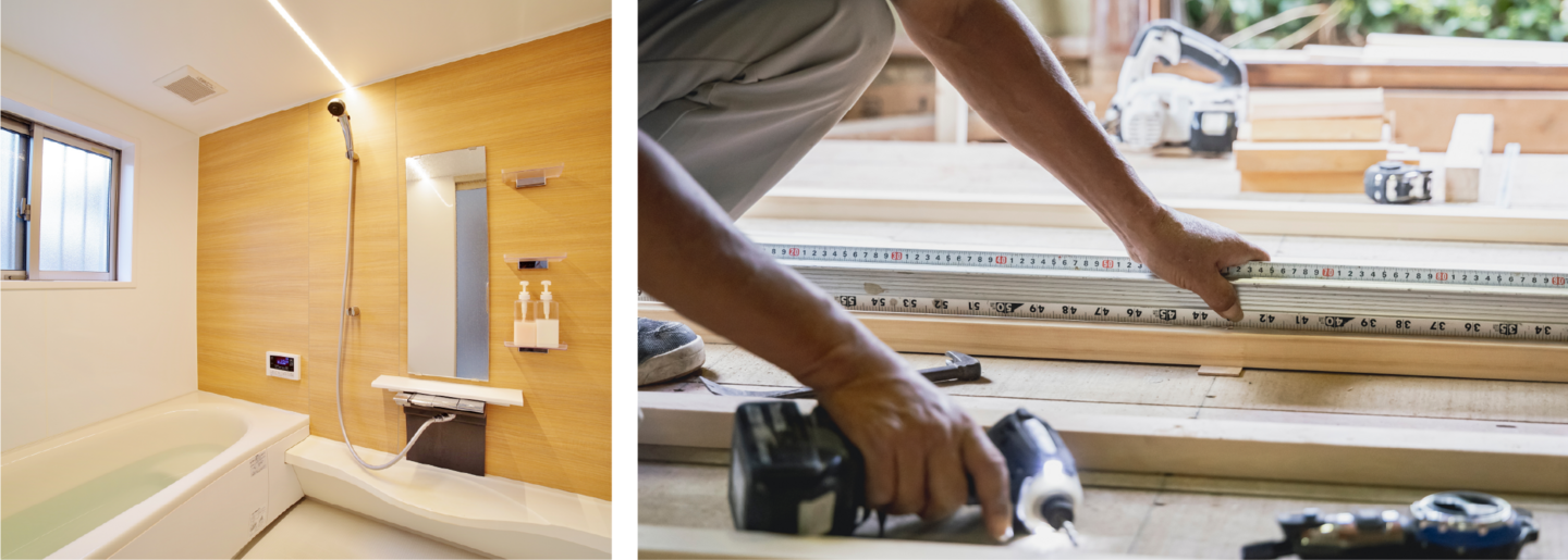 水まわりリフォームなどの中規模なものから、建具修理などの小規模なもの、新築建設まで、住まいのことならなんでもお任せください。一社でまとめて対応します。