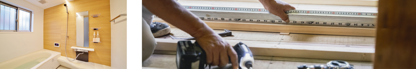 水まわりリフォームなどの中規模なものから、建具修理などの小規模なもの、新築建設まで、住まいのことならなんでもお任せください。一社でまとめて対応します。