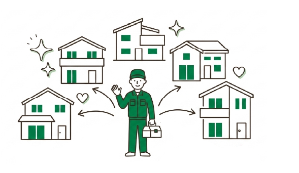 地域密着の工務店ならではの身軽なフットワークで、お困りごとやメンテナンスなど、どんなことでもすぐに駆けつけます。地元の皆様に、誠心誠意対応します。